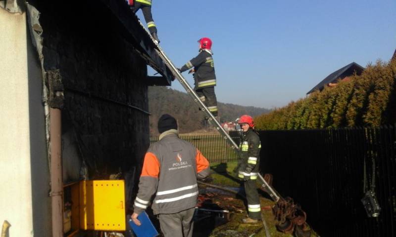 –Pożarem objęta była elewacja na ścianie pomieszczenia garażowego –mówi Marian Marszałek z PSP Nowy Sącz – Ogień przedostał się między poszycie dachu a pomieszczenia nad garażem. Działania gaśnicze podjęto po usunięciu części płyt gipsowych i wełny ocieplenia. Dokonano ewakuacji mienia ruchomego z pomieszczenia nad garażem i zadysponowano na miejsce pożaru karetkę Pogotowia Ratunkowego, której załoga przebadała najemcę płonącego budynku. Ratownicy pracujący wewnątrz budynku zabezpieczeni byli w aparaty ochrony dróg oddechowych. Działania gaśnicze strażaków trwały ponad dwie godziny. Prawdopodobnie pożar powstał od gorącego popiołu z pieca wysypanego przy elewacji budynku.