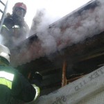 Działania strażaków polegały na podaniu prądu wody na palący się budynek oraz drugiego prądu wody w celu schłodzenia sąsiedniego budynku. Przystąpiono do rozebrania pokrycia dachowego oraz zlokalizowania ogniska pożaru. Po zlokalizowaniu i opanowaniu zagrożenia przystąpiono do ewakuacji mienia znajdującego się w budynku. Następnie rozebrano część ściany bocznej oraz stropu wraz z ociepleniem.