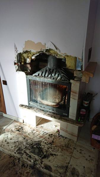-Po przybyciu na miejsce zdarzenia stwierdzono, że wewnątrz budynku z przewodu wentylacyjnego przy kominku wydobywał się dym. Kominek był wygaszony od dwóch godzin -relacjonują strażacy –Po zlokalizowaniu pożaru przystąpiono do rozbiórki części płyty gipsowo-kartonowej oraz usunięcia i dogaszenia nadpalonego elementu na zewnątrz. Sprawdzono detektorem wielogazowym pomieszczenia w budynku. W celu oddymienia pomieszczeń otwarto okna oraz użyto wentylatora oddymiającego. Dokonano ponownej kontroli pomieszczeń nie stwierdzając zagrożeń.