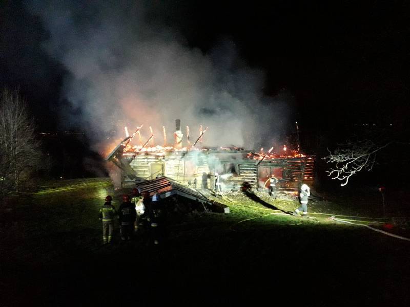 –Po przybyciu na miejsce zdarzenia ustalono, że pożarem objęty był w całości drewniany budynek mieszkalny – pustostan -relacjonują strażacy z PSP Nowy Sącz –Ustalono również, że budynek był opuszczony i nikt nie znajdował się wewnątrz. Ze względu na zerwane linki elektryczne wezwano pogotowie energetyczne , które odłączyło napięcie. Wodę do miejsca zdarzenia dowożono z pobliskich punktów czerpania a teren działań oświetlono. Po lokalizacji pożaru przystąpiono do rozbiórki spalonych elementów konstrukcyjnych budynku oraz dodatkowe przelano. Działania ratowniczo-gaśnicze prowadzone przez 8 zastępów i 47 strażaków trwały prawie trzy godziny.