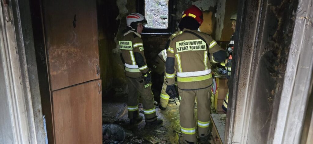 Pożar w budynku jednorodzinnym. Mężczyzna trafił do szpitala