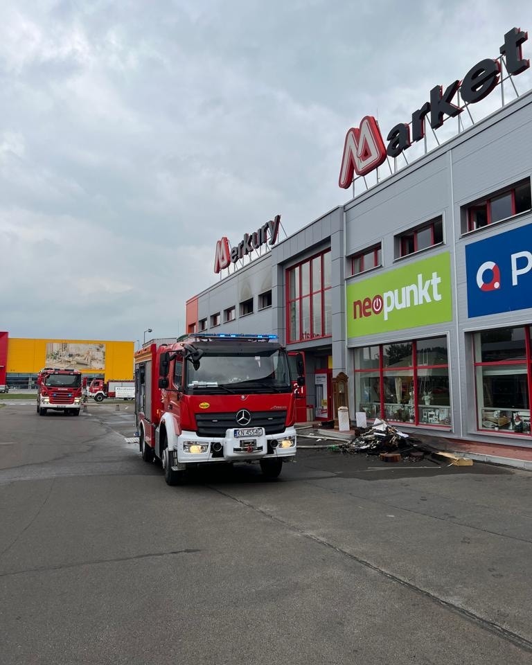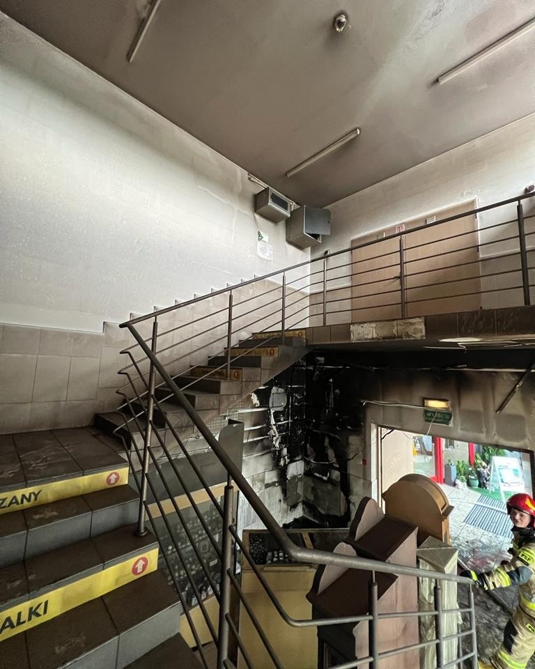 Pożar ugaszono. Wyniesiono na zewnątrz spalone, nadpalone lub uszkodzone przedmioty a następnie je dogaszono. Sprawdzono za pomocą kamery termowizyjnej pomieszczenia handlowe.