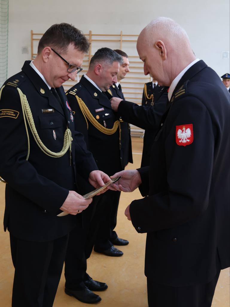 Podczas uroczystości przypomniano biografie strażaków odchodzących ze służby oraz podziękowania za lata wspólnej służby.