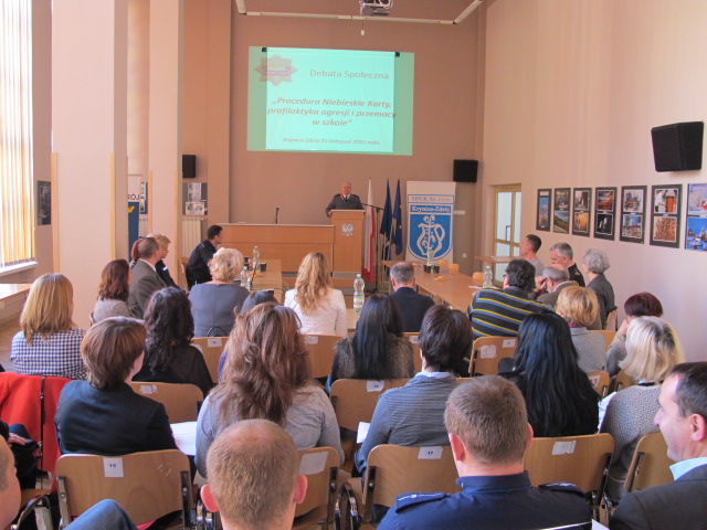 W dalszej części debaty głos zabrali prelegenci. Asp.szt. Barbara Leśniak z Zespołu Prewencji Kryminalnej, Nieletnich i Patologii KMP w Nowym Sączu, która omówiła podejmowane i realizowane przez Policję działania w związku z uzasadnionym podejrzeniem zaistnienia przemocy w rodzinie w oparciu o procedurę Niebieskiej Karty. Następnie przewodniczący zespołu interdyscyplinarnego przy Ośrodku Pomocy Społecznej w Krynicy Zdroju Grzegorz Koza , zapoznał uczestników debaty z zadaniami i działaniami podejmowanymi przez zespoły interdyscyplinarne i grupy robocze w zakresie pomocy osobom dotkniętym przemocą rodziną w oparciu o wdrożoną już procedurę Niebieskiej Karty.