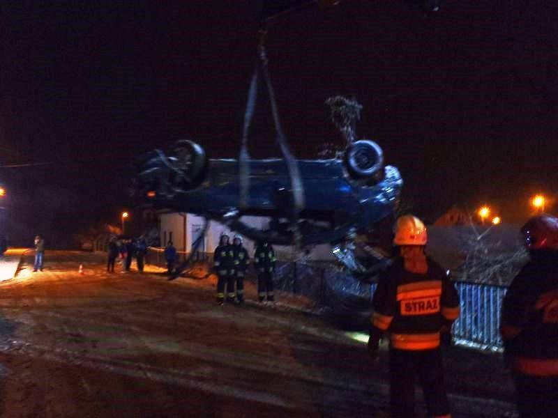 Przysietnica. Samochód wpadł do rzeczki. Wypadek goni wypadek….