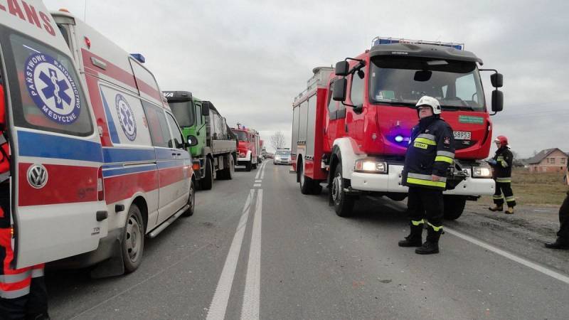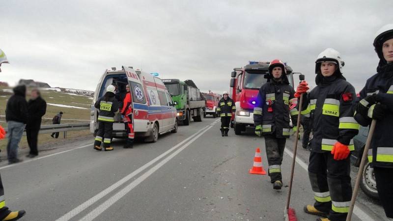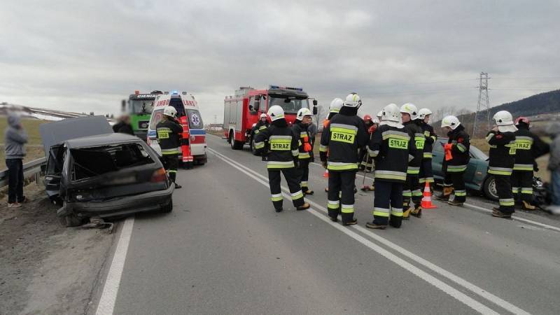 Po przybyciu na miejsce zdarzenia ustalono, że doszło do zderzenia dwóch samochodów osobowych. Droga Krajowa nr 28 była całkowicie zablokowana gdyż samochody znajdowały się częściowo na jezdni. Na miejscu zdarzenia znajdowały się dwie karetki Pogotowia Ratunkowego. Wszyscy uczestnicy zdarzenia opuścili pojazdy o własnych siłach. Po przebadaniu przez załogi karetek Pogotowia Ratunkowego osoby te pozostały na miejscu zdarzenia.