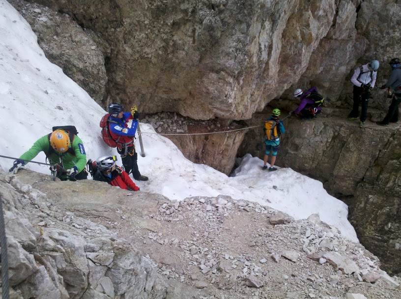 2 dzień: cała ekipa zaliczyła 2 ferraty ‘De-Luca’ i ‘Paterno’, zdobywając szczyt ‘Monte Paterno’ 2744 m.