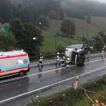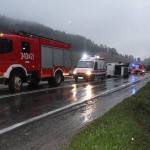 Roztoka Wielka -samochód dostawczy wywrócił się na bok