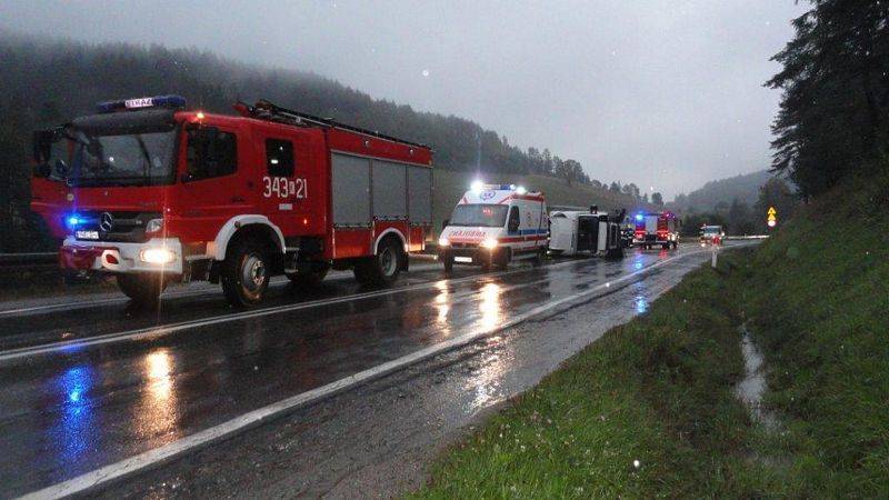 W piątek 25 września po południu w Roztoce Wielkiej (gmina Łabowa) samochód dostawczy leżał na prawym boku na drodze krajowej blokując jeden pas ruchu. Kierowca znajdował się poza pojazdem i nie uskarżał się na żadne dolegliwości. Z samochodu nastąpił wyciek płynów eksploatacyjnych z chłodnicy. Ruch pojazdów prowadzony był wahadłowo.