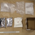 Ponadto w toku prowadzonych czynności podczas przeszukania miejsc zamieszkania zatrzymanych u 25-latka policjanci znaleźli woreczek strunowy z zawartością białego kryształu o wadze 9,12 grama. (około 30 działek dealerskich). Badanie przy pomocy testerów narkotykowych wykazało, iż jest to najprawdopodobniej mefedron.