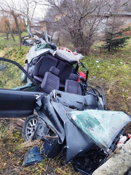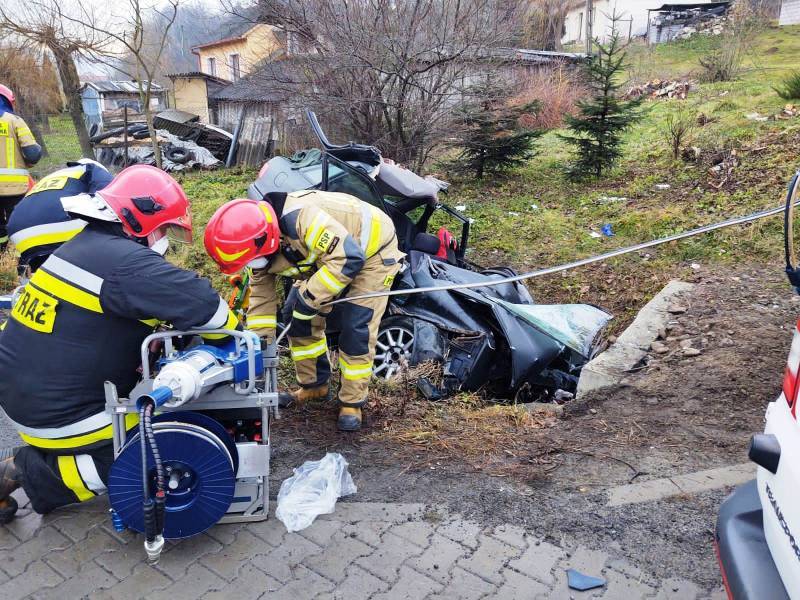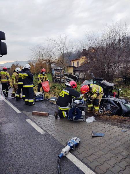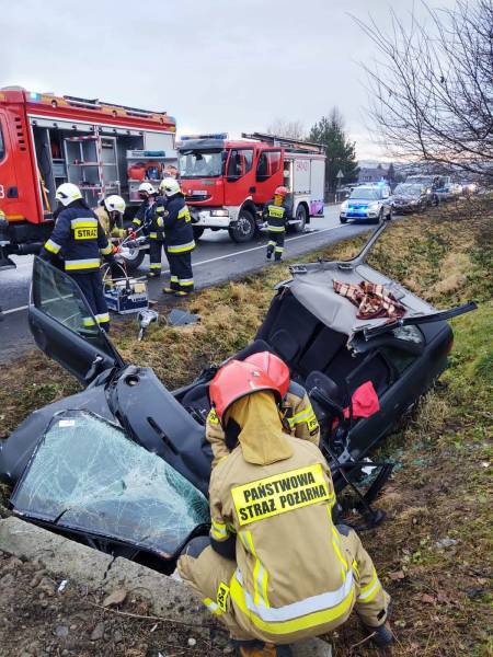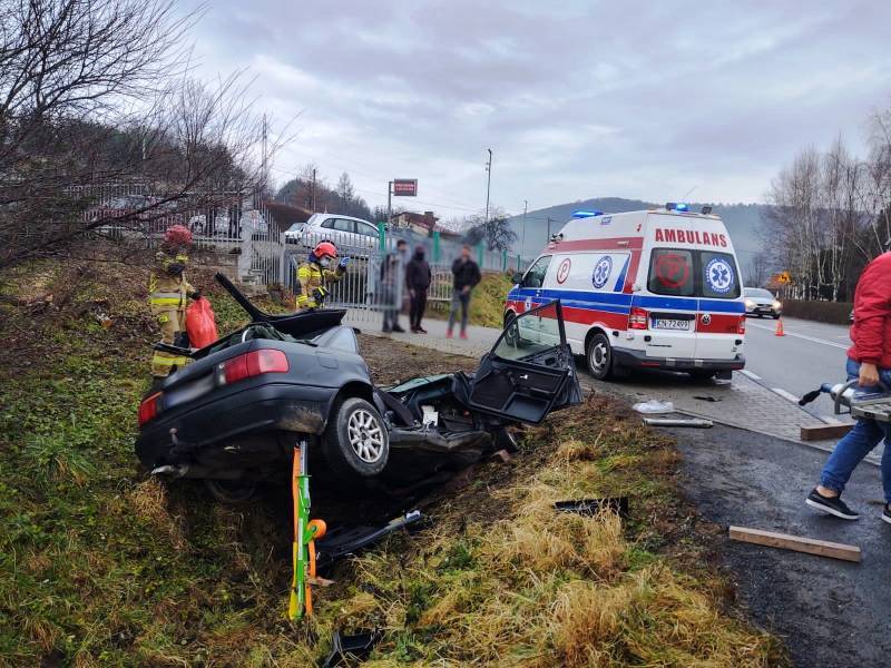 Dzisiaj rano na drodze krajowej nr 75 w Łososinie Dolnej doszło do poważnego wypadku. Samochód osobowy marki Audi uderzył w przepust. Kierowca był zakleszczony w pojeździe.