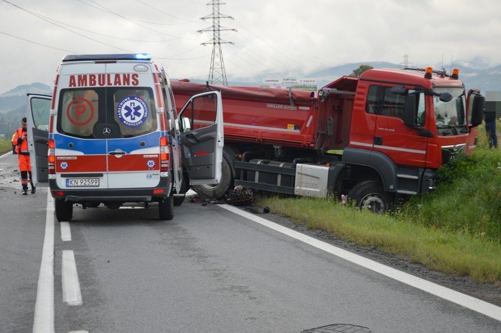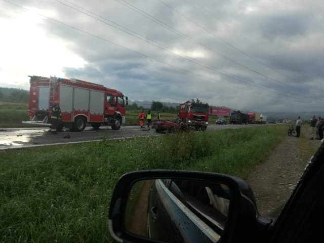 Na wysokości firmy Batim samochód osobowy marki Honda (na tablicach rejestracyjnych z Powiatu Nowosądeckiego KNS), którym podróżowały dwie osoby zderzył się z ciężarówką MAN (na tablicach rejestracyjnych z Grodziska Mazowieckiego). Nie udało się uratować 19-letniego kierowcy samochodu osobowego. 56-letnia kobieta (pasażerka Hondy) trafiła w ciężkim stanie do szpitala. Oboje byli zakleszczeni w pojeździe.