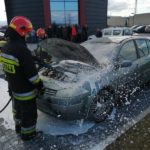 – Po przybyciu na zdarzenia ustalono, że na parkingu doszło do zapalenia się komory silnika samochodu osobowego marki Renault –relacjonują strażacy – Właściciel pojazdu znajdował się poza nim i nie uskarżał się na żadne dolegliwości. Samochód znajdował się w bezpiecznej odległości od innych zaparkowanych pojazdów. Właściciel jak i pracownicy firmy ugasili pojazd przed przybyciem zastępów Straży Pożarnej za pomocą pięciu gaśnic proszkowych. Działania strażaków polegały na zabezpieczeniu miejsca zdarzenia oraz podaniu piany ciężkiej na komorę silnika w celu wyeliminowania zarzewi ognia. Sprawdzono przedział pasażerski za pomocą kamery termowizyjnej. Prawdopodobną przyczyną pożaru była wada środku transportu.