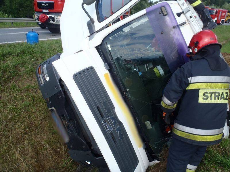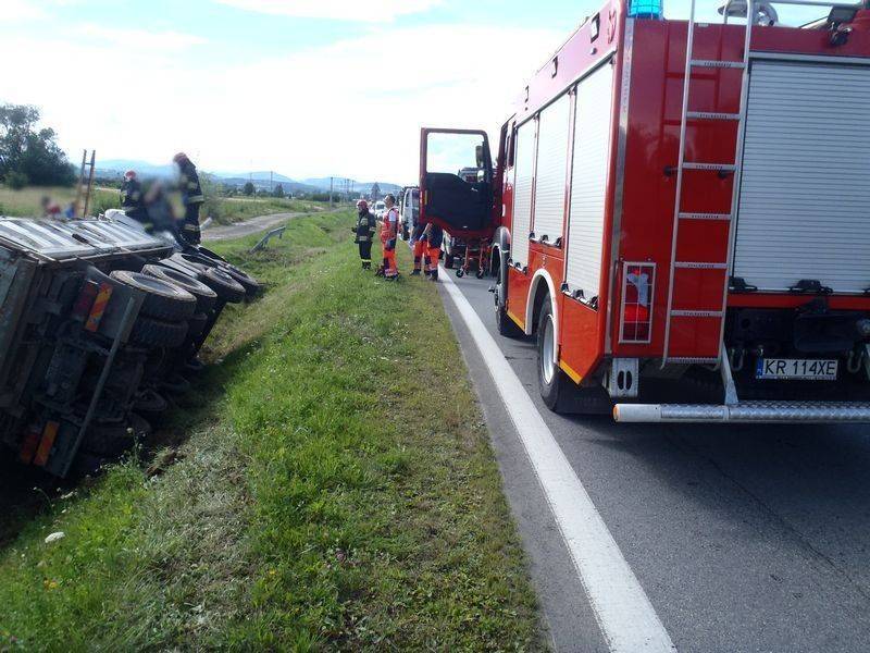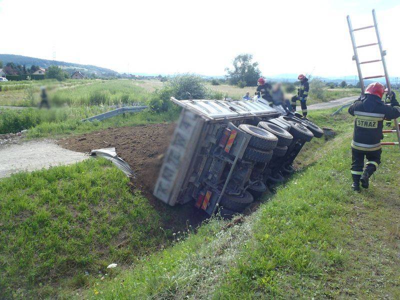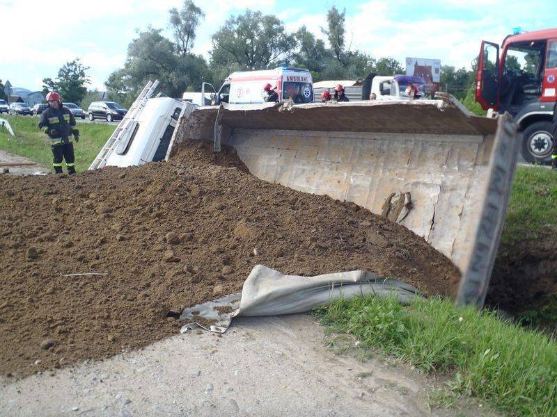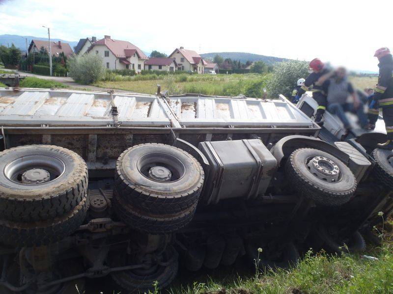 -Od świadków zdarzenia uzyskano informację, że kierowca jechał sam pojazdem i prawdopodobnie stracił przytomność. Strażacy udali się na kabinę ciężarówki. Kierowcę „sprowadzono” z wykorzystaniem drabiny nasadkowej a następnie przekazano załodze przybyłej karetki pogotowia ratunkowego-mówi Marian Marszałek z PSP Nowy Sącz – Dalsze działania polegały na sorpcji rozlanego oleju hydraulicznego. Po wykonaniu wstępnych badań, lekarz podjął decyzje o zabraniu kierowcy do szpitala. Uszkodzony pojazd przewoził ziemię. Znajdował się całkowicie poza jezdnią i nie powodował utrudnień w ruchu dlatego też został pisemnie przekazany pracownikowi firmy przewozowej. Działania strażaków trwały niespełna godzinę.