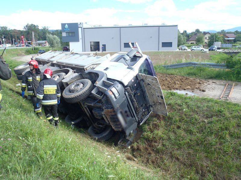 Dzisiaj (11 lipca) około godziny 16.40 na obwodnicy Starego Sącza samochód ciężarowy MAN „wylądował” w rowie melioracyjnym. Kierowca znajdował się w kabinie, a jak podają świadkowie zdarzenia prawdopodobnie stracił przytomność.