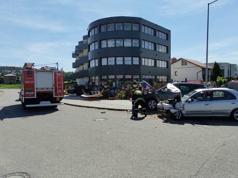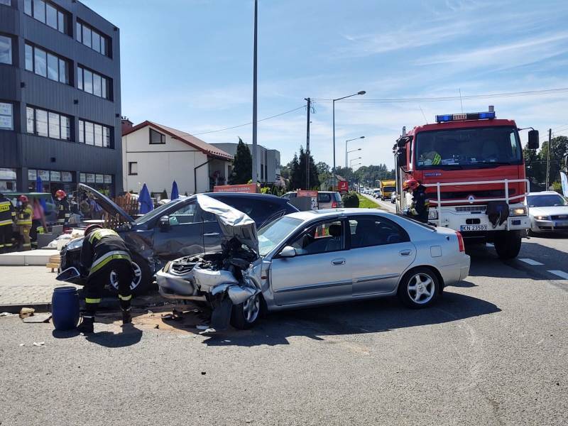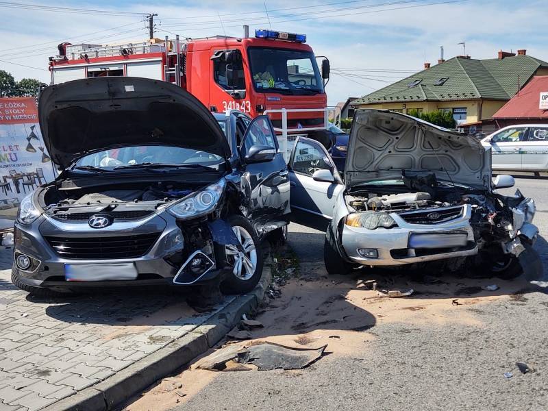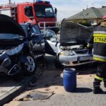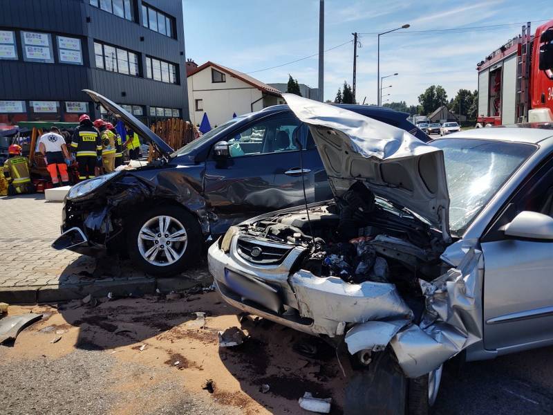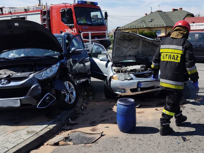 -Doszło tam do zderzenia dwóch samochodów osobowych marki Kia Shuma oraz Hyundai ix 35. W samochodzie marki Kia podróżowało pięć osób w tym dwoje dzieci, natomiast w Hyundai ix 35 sam kierujący -relacjonują strażacy – Wszyscy uczestnicy zdarzenia opuścili samochody o własnych siłach i znajdowali się na chodniku w pozycji siedzącej. Pięć osób zostało poszkodowanych. Na miejsce zdarzenia przybyły trzy karetki, dwa radiowozy Policji oraz jeden radiowóz Straży Miejskiej. Działania straży pożarnej polegały na zabezpieczeniu miejsca zdarzenia oraz udzieleniu pomocy medycznej osobom poszkodowanym. Trzy osoby zostały przewiezione do szpitala. Na miejscu pozostał patrol Policji prowadzący czynności dochodzeniowe. Działania strażaków trwały niespełna godzinę.