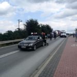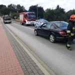 -Doszło do zderzenia dwóch samochodów osobowych tj. Mercedes C220 oraz Audi A4 -relacjonują strażacy –Samochodami podróżowało łącznie siedem osób w tym troje dzieci.  Przed przybyciem Straży Pożarnej pod opieką załogi karetki Pogotowia ratunkowego znajdowała się jedna osoba dorosła oraz dziecko. Po wstępnym przebadaniu przez ratowników obydwie osoby zostały przetransportowane do szpitala. W trakcie prowadzonych działań ruch na drodze był całkowicie zablokowany. Działania strażaków polegały na zabezpieczeniu miejsca zdarzenia, odłączeniu klem od akumulatora oraz  usunięciu pozostałości pojazdów z jezdni. Działania strażaków trwały prawie dwie godziny.