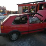 Strażacy weszli do pojazdu w celu zabezpieczenia poszkodowanego przed szkłem z wycinanej przedniej szyby. Przy użyciu sprzętu hydraulicznego odgięto drzwi od strony kierowcy oraz dokonano przecięcia słupków w celu odgięcia dachu. Strażacy wraz z ratownikami medycznymi przystąpili do wydobycia osoby poszkodowanej z pojazdu na nosze typu deska a następnie przetransportowali kierującego do karetki pogotowia. Mężczyzna został przetransportowany do szpitala -relacjonują strażacy.