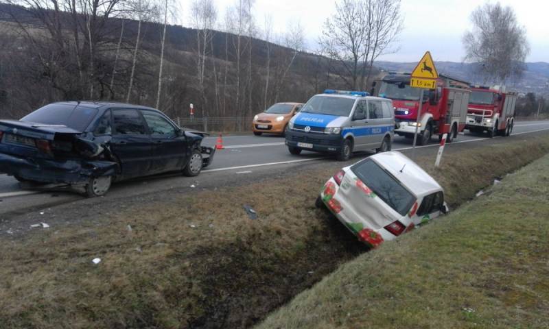 –Na drodze DK 28 w kierunku Limanowej doszło do zderzenia ze sobą samochodów Skoda Fabia, Skoda Octavia i Volkswagen Passat -relacjonują strażacy –Jeden pas ruchu w kierunku Nowego Sącza był zablokowany a ruch odbywał się wahadłowo. Z samochodów Skoda Fabia i Octavia kierowcy opuścili pojazd o własnych siłach i nie uskarżali się na żadne dolegliwości. Jedna osoba z samochodu Volkswagen Passat znajdowała się pod opieką ratowników Pogotowia ratunkowego. Działania strażaków polegały na zabezpieczeniu miejsca zdarzenia, rozłączeniu instalacji elektrycznej w pojazdach,sorpcji rozlanych płynów eksploatacyjnych oraz usunięciu z jezdni elementów powypadkowych. Jedna osoba poszkodowana została przewieziona do szpitala.