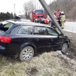 –Doszło tam do zderzenia dwóch samochodów tj. Audi i Opel Astra, którymi podróżowały cztery osoby –relacjonują strażacy –Samochód marki Audi po uderzeniu wypadł z jezdni i uderzył w przydrożny słup energetyczny całkowicie go niszcząc. W początkowej fazie nikt nie uskarżał się na żadne dolegliwości. W trakcie działań jedna osoba poczuła się źle. W związku z tym na miejsce zdarzenia zadysponowano karetkę Pogotowia ratunkowego. Do czasu przyjazdu karetki udzielono osobie poszkodowanej kwalifikowanej pierwszej pomocy. Po pewnym czasie kolejna osoba zaczęła uskarżać się na złe samopoczucie. Po przebadaniu do szpitala zostały zabrane dwie osoby. Na miejsce zdarzenia przybyło Pogotowie Energetyczne. Na tym działania strażaków trwające półtorej godziny zakończono.Policja prowadzi czynności wyjaśniające.