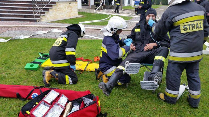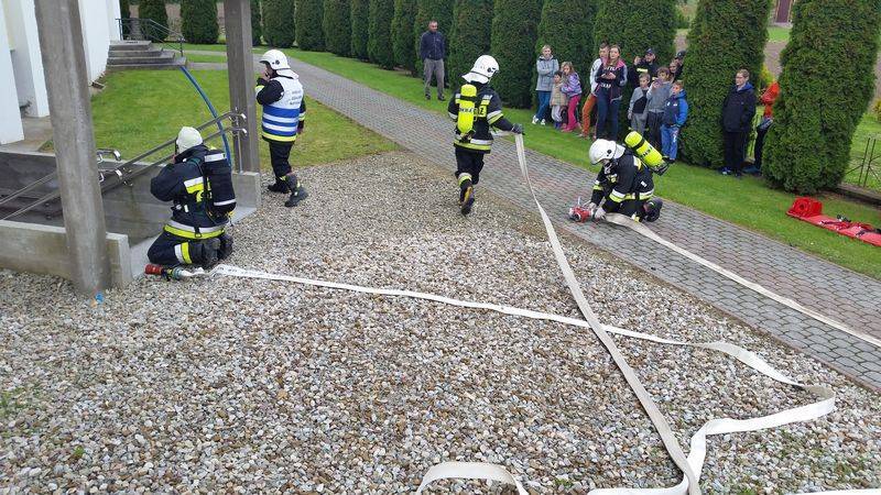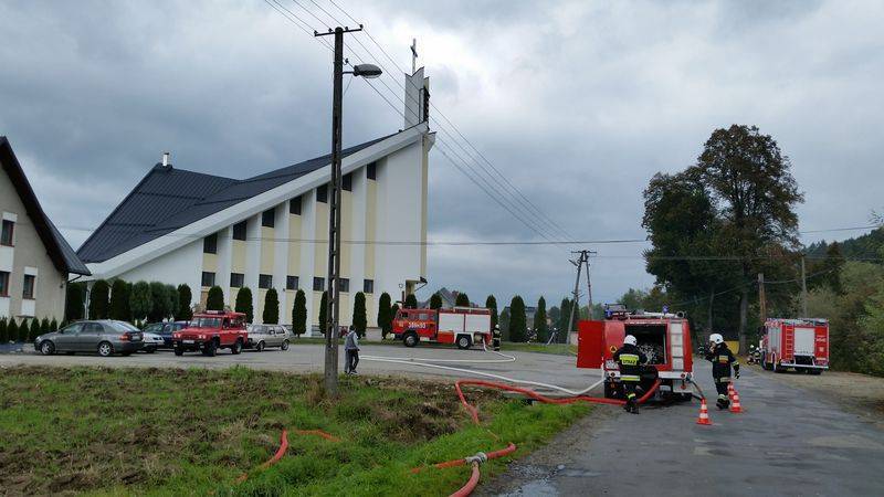 Tam doszło do wypadku drogowego w wyniku, którego samochód wypadł z drogi a dwie osoby zostały poszkodowane. Jedna z nich była zakleszczona w samochodzie a druga oddaliła się a strażacy musieli ją odnaleźć. Później doszło do pożaru w najniższej kondygnacji pobliskiego kościoła w którym prowadzone były prace remontowe. Trzech pracowników pozostało w obiekcie i trzeba było ich ewakuować na zewnątrz. Zbudowano punkt czerpania wody na pobliskim potoku a następnie dostarczano wodę do pożaru.