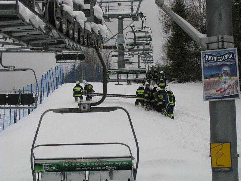 W sobotę 3 grudnia odbyło się szkolenie w zakresie wykorzystania drabin pożarniczych podczas ewakuacji linowej kolei krzesełkowej. Szkolenie odbyło się w Szczawniku oraz w Wierchomli Wielkiej i uczestniczyli w nim strażacy z jednostek OSP.