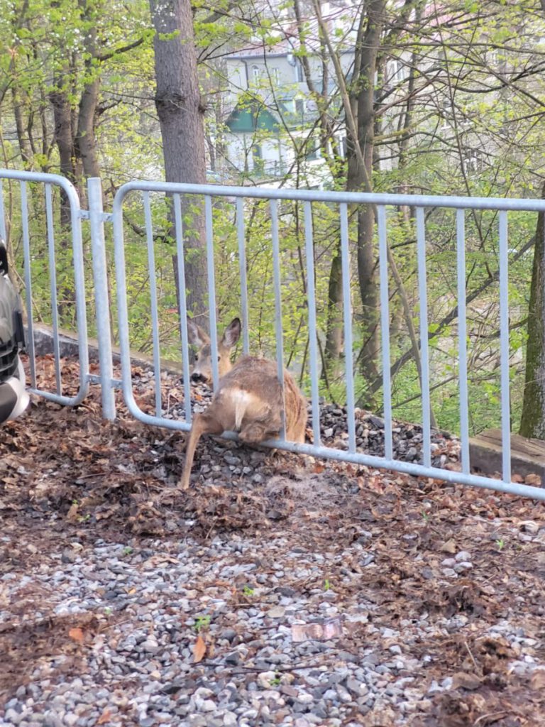 – Po przybyciu na miejsce zdarzenia ustalono, że pomiędzy barierkami ogrodzenia utknęła niewielka sarna -relacjonują strażacy.