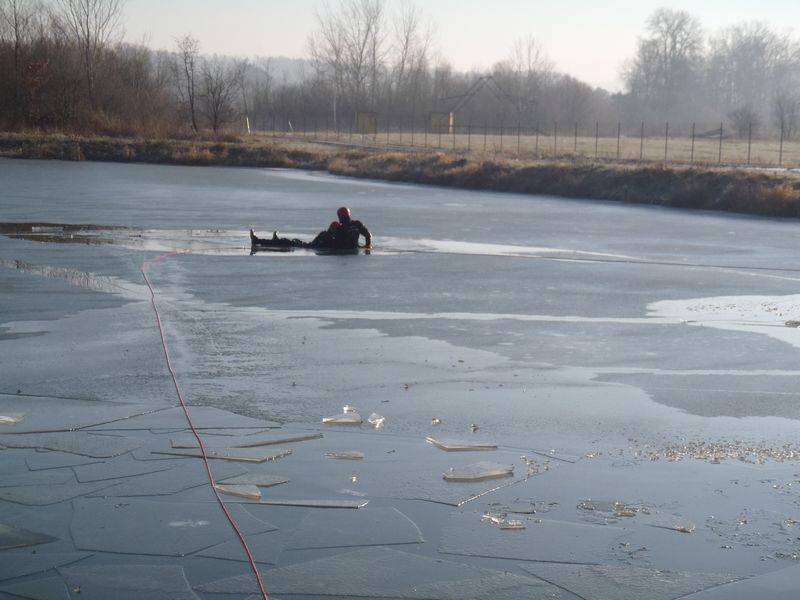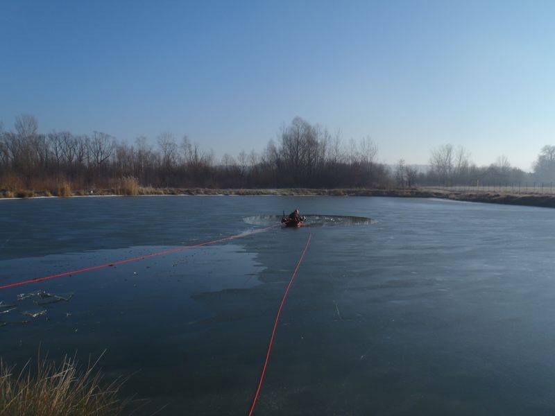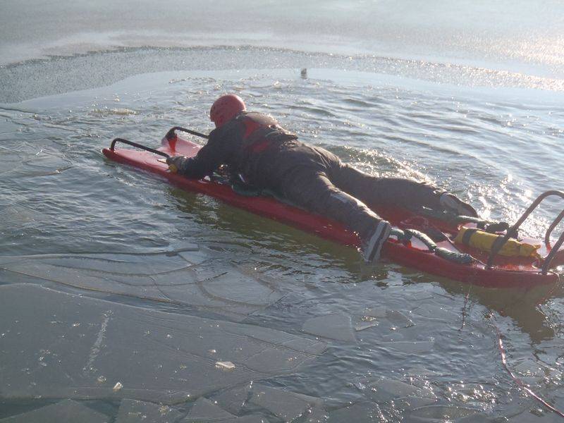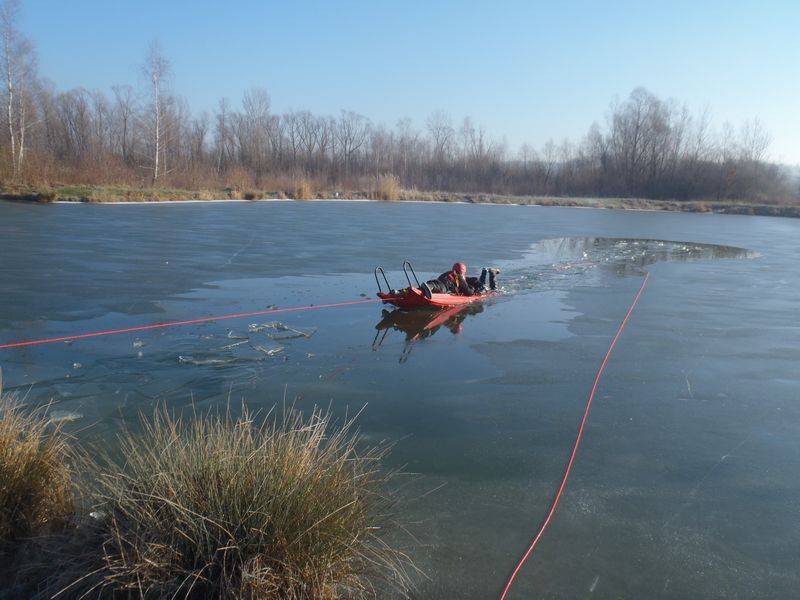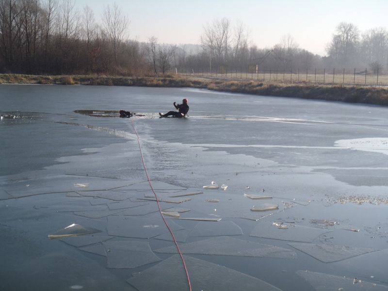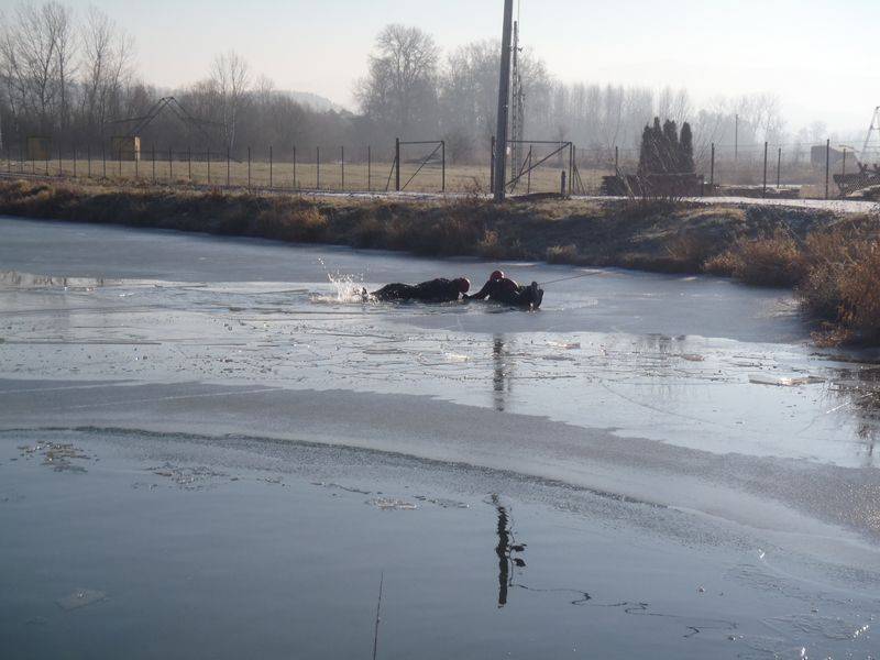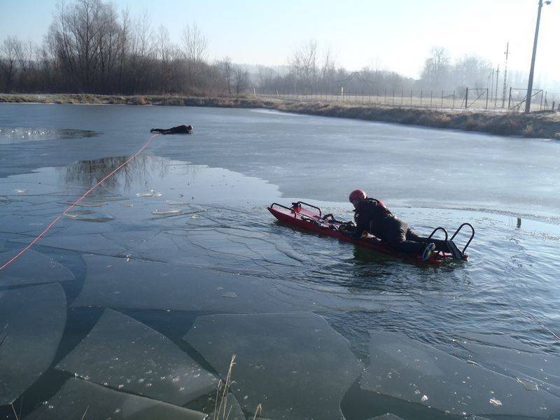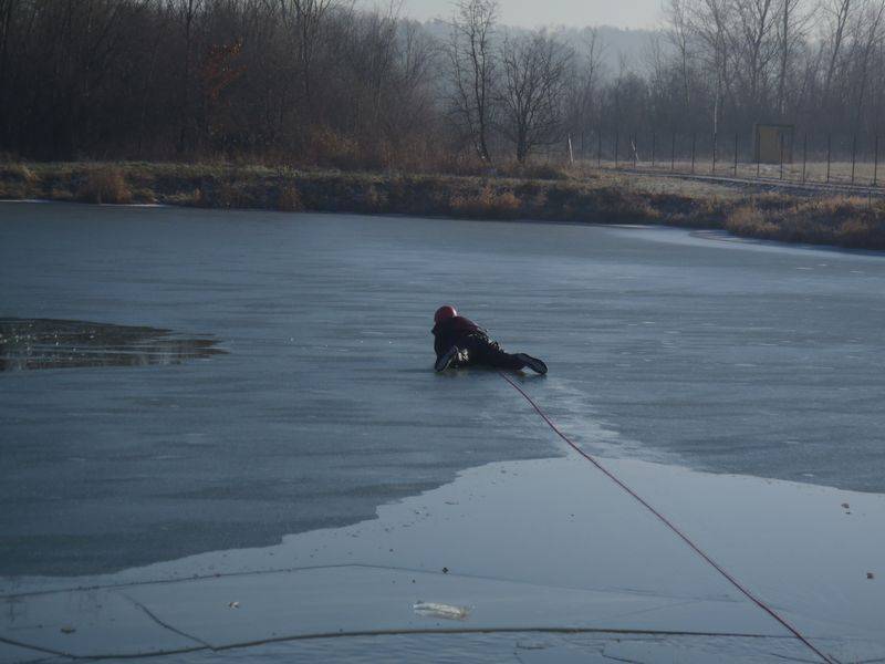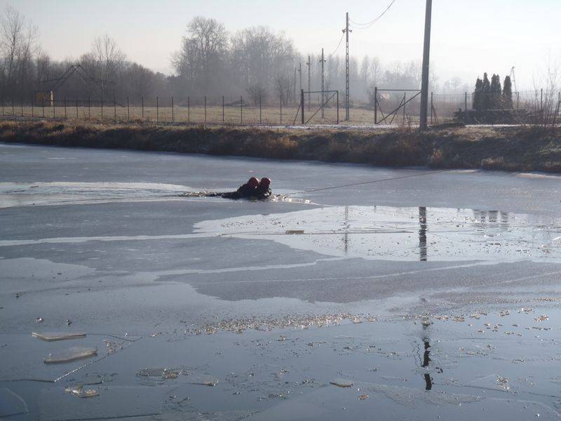 Kilka dni z lekkim mrozem wystarczyło aby na stawach w Starym Sączu powstał lód, który pozwolił strażakom z Nowego Sącza na przeprowadzenie ćwiczeń z deską lodową. Lód był na tyle cienki, że załamywał się pod osobami .To idealne warunki aby poćwiczyć.