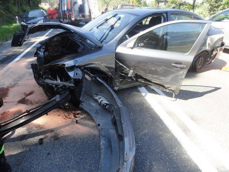Tęgoborze -zderzenie 4 samochodów osobowych. 6 osób w szpitalu