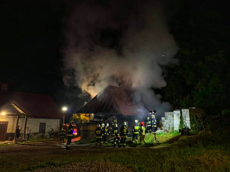 –Po przybyciu na miejsce pożaru ustalono, że pożarem objęte było wnętrze budynku gospodarczego(spichlerz) -relacjonują strażacy – W odległości około 5 m od pożaru znajdował się budynek mieszkalny, który nie był zagrożony. Strażacy ugasili pożar. Po jego zlokalizowaniu przystąpiono do prac rozbiórkowych spalonej drewnianej konstrukcji budynku gospodarczego oraz wyniesieniu z budynku spalonego sprzętu. Pogorzelisko sprawdzono i nie wykryto zagrożenia pożarowego. Działania strażaków trwały prawie trzy godziny. Przyczyna pożaru jest nieustalona.