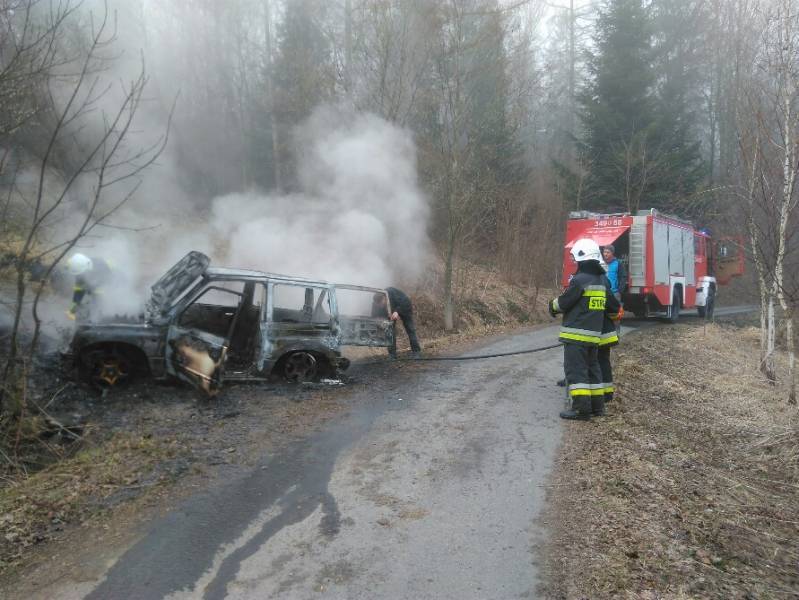 -Po przybyciu na miejsce zdarzenia ustalono, że na poboczu drogi gminnej pożarem objęty był cały samochód terenowy suzuki Vitara -relacjonują strażacy –Właściciel pojazdu znajdował się poza nim i nie uskarżał się na żadne dolegliwości. Strażacy ugasili pożar i schłodzili nagrzane elementy wyposażenia pojazdu. Działania strażaków trwały godzinę.