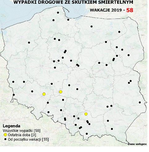 Wakacje 2019. Mapa wypadków drogowych ze skutkiem śmiertelnym