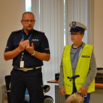 Dzieci wraz z policjantką, sierż. sztab. Justyną Basiagą, przypomniały sobie podstawowe zasady bezpieczeństwa i z zaangażowaniem o nich rozmawiały. St.asp. Ryszard Ogurek przybliżył najmłodszym pracę funkcjonariusza Wydziału Ruchu Drogowego – pokazał między innymi elementy ubioru i sprzęt, jakim na co dzień posługują się policjanci podczas przeprowadzania kontroli drogowych. Dzieci były bardzo zainteresowane i chętnie zadawały pytania. Miały również okazję dowiedzieć się, jak wygląda praca technika kryminalistyki. O niej opowiedziała najmłodszym, sierż. sztab. Magdalena Chochorowska. Każdy uczestnik spotkania otrzymał pamiątkowy dyplom, na którym odcisnął linie papilarne.