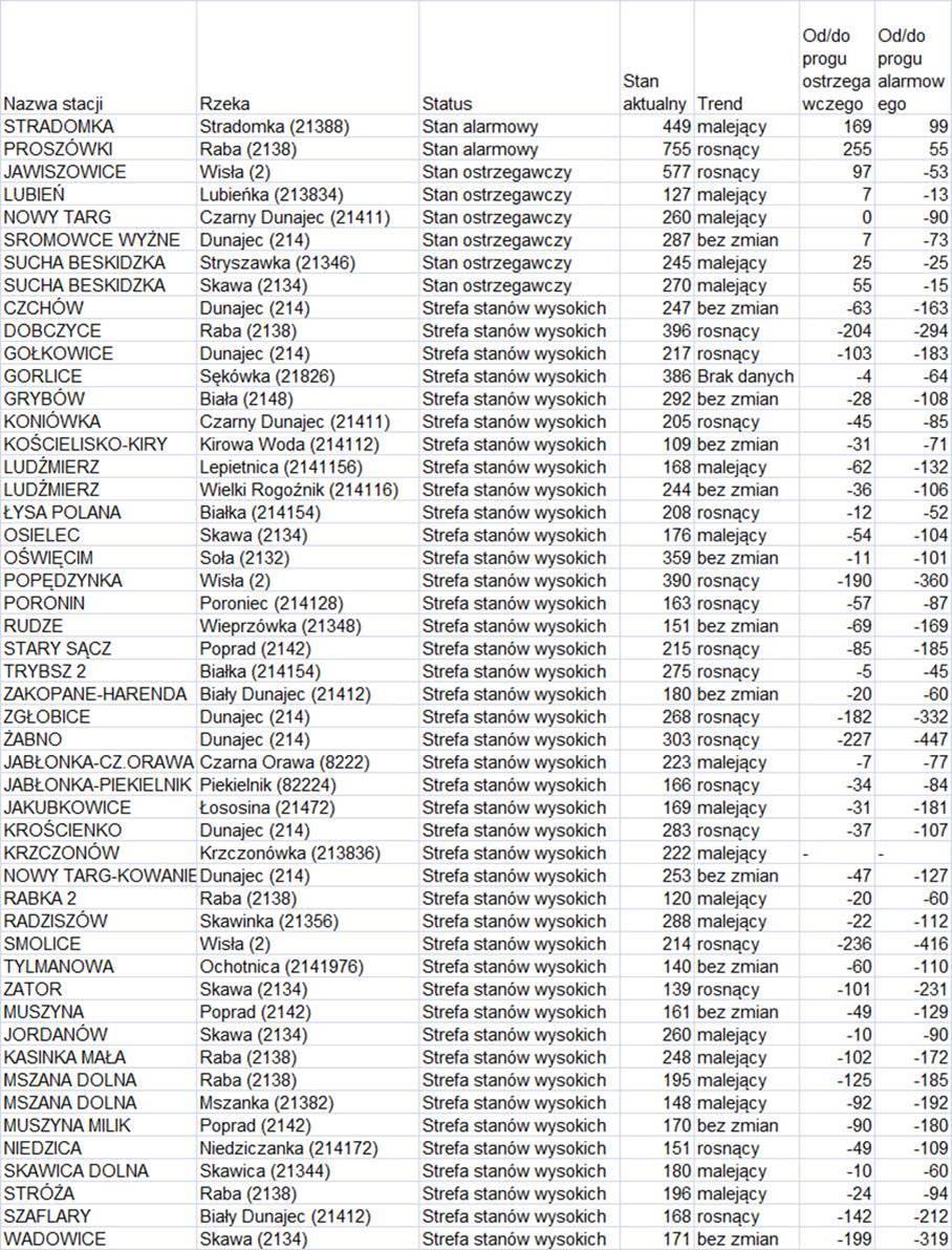 Stany ostrzegawcze i alarmowe według ostatnich danych