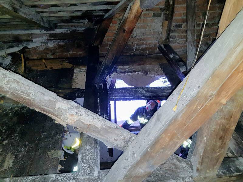 –Na pierwszym piętrze budynku mieszkalnego palił się drewniany strop -relacjonują strażacy -Działania strażaków polegały na zabezpieczeniu miejsca zdarzenia. Ugasili pożar i przewietrzyli pomieszczenia. Wyrzucono przez okno nadpalone deski z rozebranego stropu oraz sprawdzono poddasze kamerą termowizyjną. Właściciel budynku został poinformowany o konieczności dozoru miejsca wystąpienia pożaru. Działania strażaków trwały ponad godzinę. Przyczyna pożaru jest nieustalona.