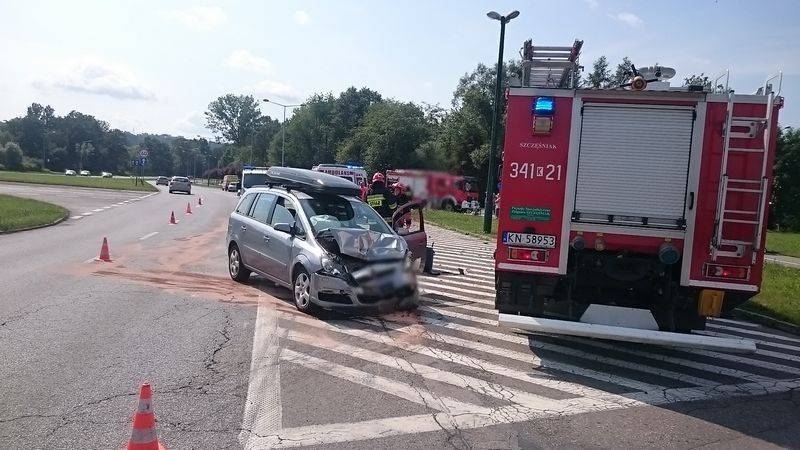Ze wstępnych informacji wynika, że kierujący pojazdem Volkswagen Polo na skrzyżowaniu ulic Piłsudskiego i I Brygady wjechał w Opla Zafirę. W wyniku zderzenia poważne obrażenia odnieśli kierowca opla i pasażerowie: jego żona i ich sześcioletnie dziecko. Wszyscy trafili do szpitala.