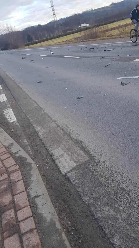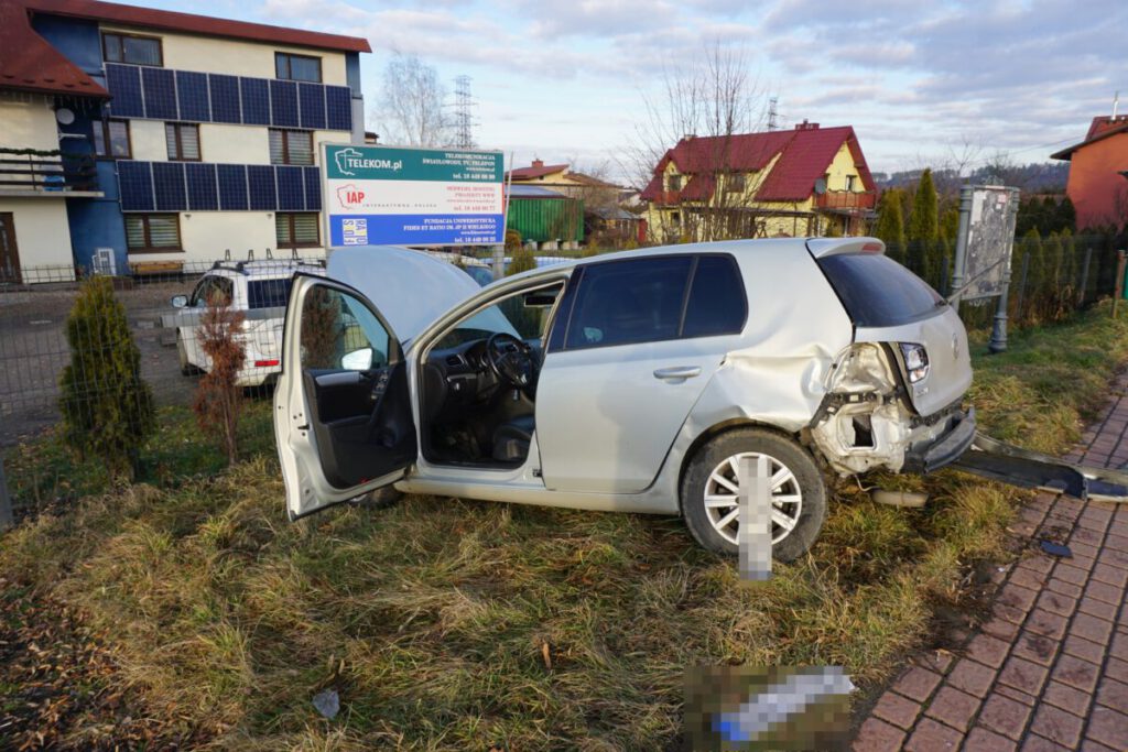 Volkswagen golf „zatrzymał” się na ogrodzeniu jednej z posesji, natomiast drugi samochód zatrzymał się kilkanaście metrów dalej. Świadkowie zdarzenia mówią o potężnym uderzeniu –huk był niesamowity -komentują. Na skutek zdarzenia poszkodowana została jedna osoba, która aktualnie znajduje się pod opieką Zespołu Ratownictwa Medycznego.