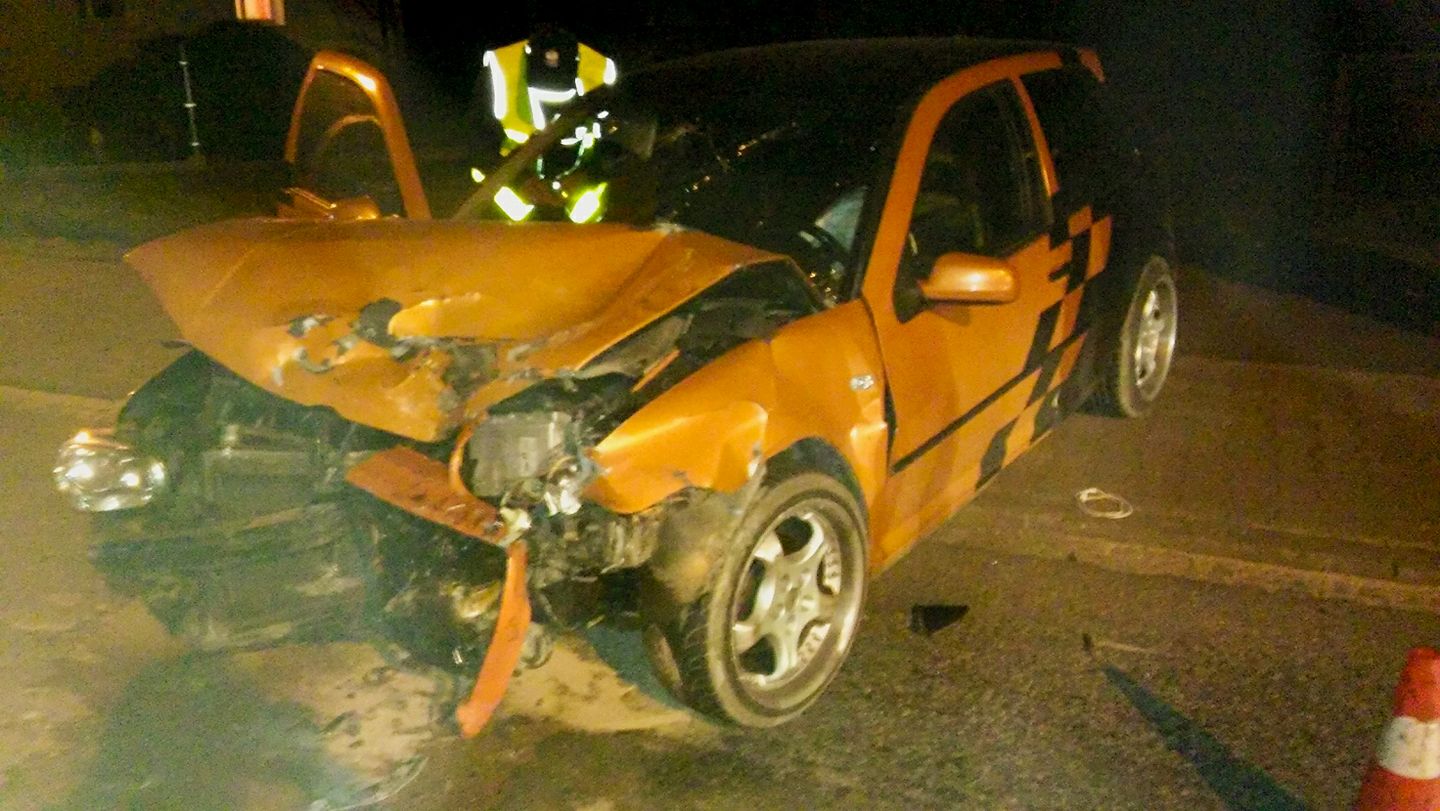 Dwa samochody osobowe marki Renault Laguna i Volkswagen Golf zderzyły się dzisiaj (5 listopada) około godziny 19:30 w Barcicach na drodze krajowej nr 87 z Nowego Sącza do do przejścia granicznego na Słowację Piwniczna / Mniszek nad Popradem.