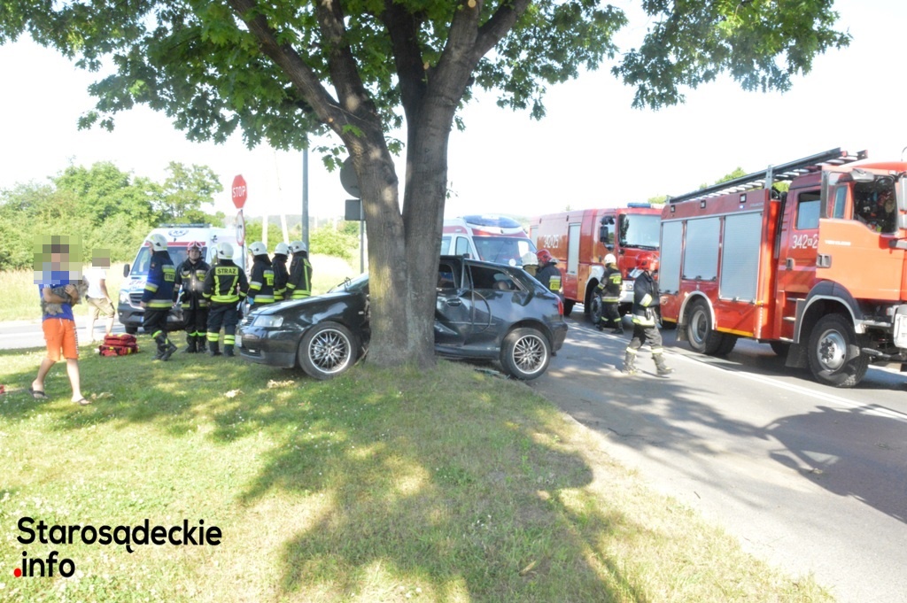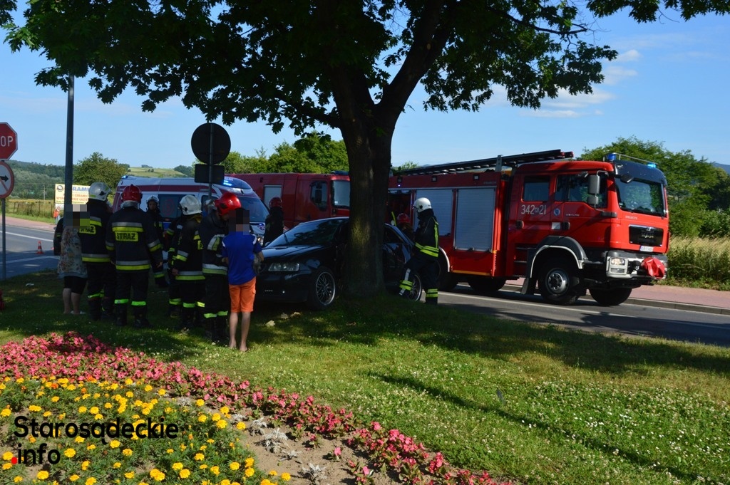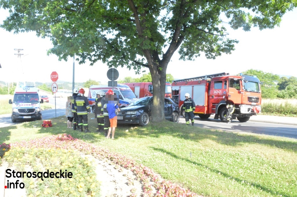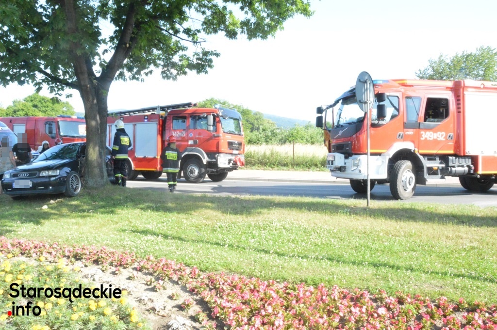 Jak podają świadkowie zdarzenia, mężczyzna podróżujący Matizem wyjeżdżał z ulicy Pod Ogrodami i wymusił pierwszeństwo. Kobieta kierująca Audi od Nowego Sącza, uderzyła w drzewo. Kierująca i pasażerowie, w tym dwoje dzieci zostali przetransportowani do szpitala.