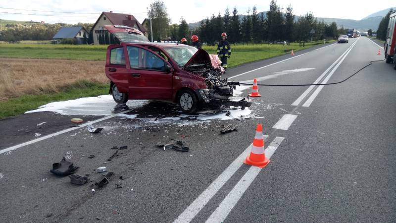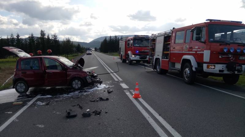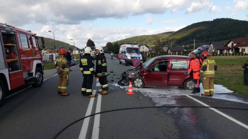 Doszło tam do najechania pojazdu Fiat na tył pojazdu Volvo -relacjonują strażacy – Samochodami podróżowało łącznie pięć osób. Wszystkie osoby znajdowały się poza pojazdami. Droga była całkowicie zablokowana. Trzy osoby zostały zabrane do szpitala.Działania strażaków trwały ponad półtorej godziny.