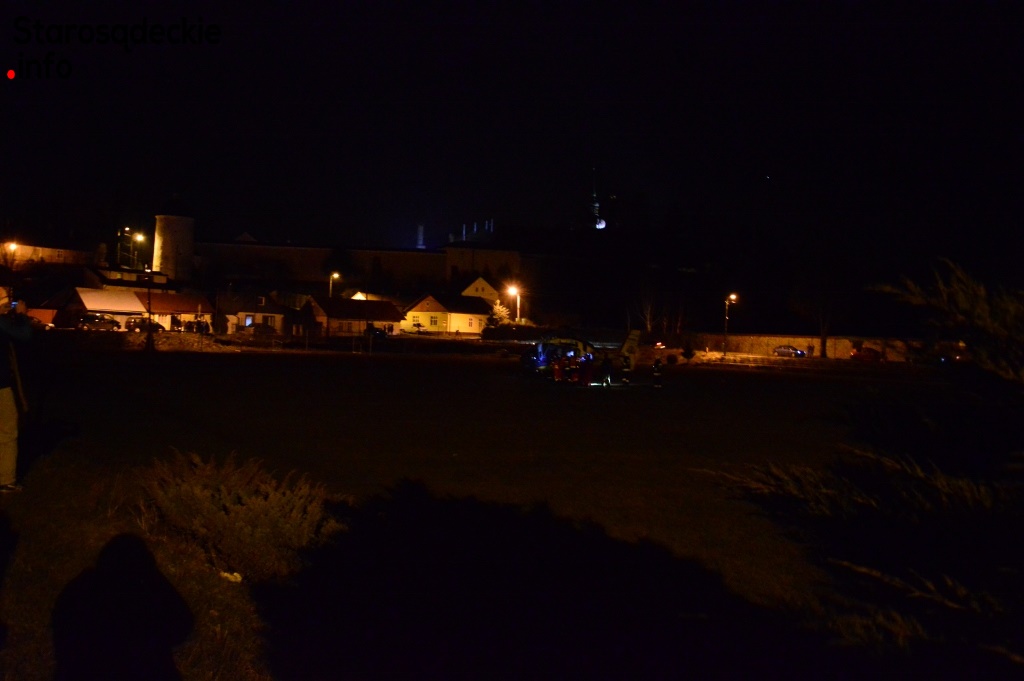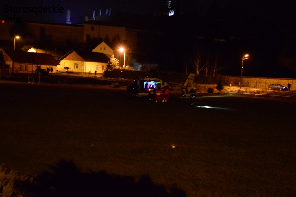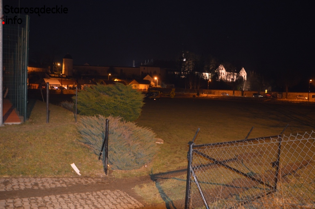 Ze względu na fatalne warunki pogodowe i zapadający zmrok nie było możliwości, by helikopter wylądował bliżej stoku. Z tego względu zabezpieczono lądowisko na płycie boiska sportowego w Starym Sączu. Karetka wiozła poszkodowaną blisko 40 km gdzie potem została przetransportowana helikopterem do krakowskiego szpitala.