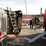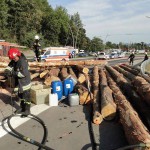 Ze zbiorników z paliwem wylewało się na drogę paliwo, które zostało zasypane sorbentem przez strażaków. Pozostała część paliwa została przepompowana do zbiornika zastępczego. Do przewoźnika należało zabezpieczenie zastępczego samochodu oraz dźwigu do załadunku drewna leżącego na drodze. Działania prowadziła specjalistyczna grupa ratownictwa chemicznego z JRG nr 1 w Nowym Sączu.