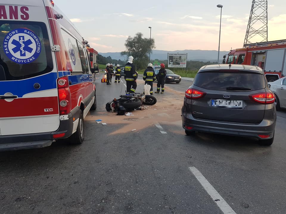 Dzisiaj (24 sierpnia) około godziny 18:00 na ulicy Węgierskiej w Nowym Sączu doszło do wypadku z udziałem samochodu osobowego i motocykla. Na miejsce natychmiast udały się służby ratunkowe. Ruch na drodze był całkowicie zablokowany.