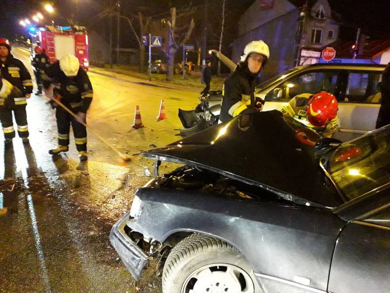 –Doszło tam do kolizji dwóch samochodów osobowych. Pojazdy znajdowały się na jednym pasie ruchu. Pojazdami podróżowały łącznie trzy osoby. Uczestnicy zdarzenia opuścili pojazdy o własnych siłach i udzielana była im pomoc przez załogę Pogotowia ratunkowego .Nie potrzebna była hospitalizacja. -relacjonują strażacy –nasze działania polegały na zabezpieczeniu miejsca zdarzenia, odłączeniu klem od akumulatorów, sorpcji płynów eksploatacyjnych, zepchnięciu pojazdów na pobocze, oraz usunięciu pozostałości pokolizyjnych z jezdni.