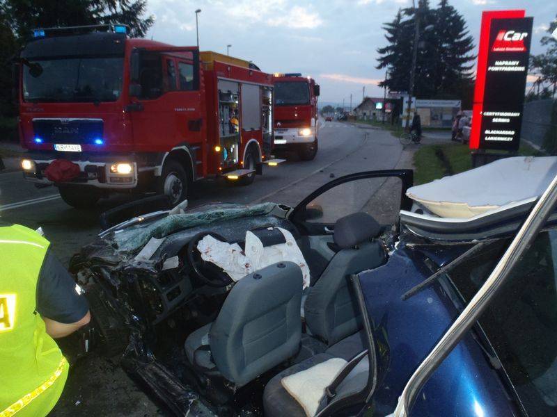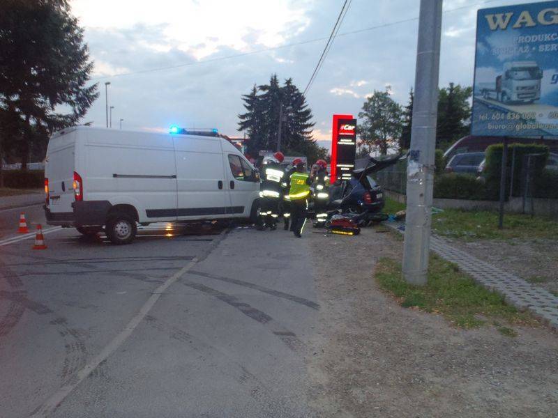 Wypadek na Węgierskiej. Kierowca zakleszczony w pojeździe. ZDJĘCIA
