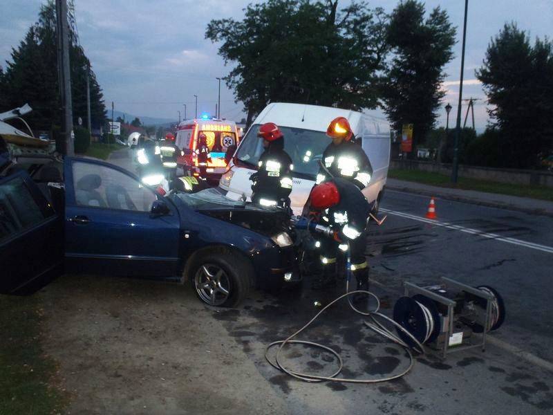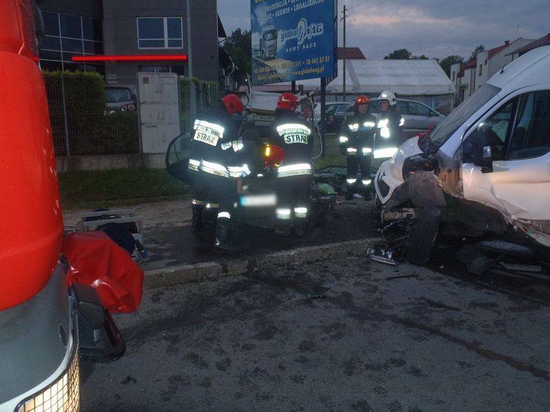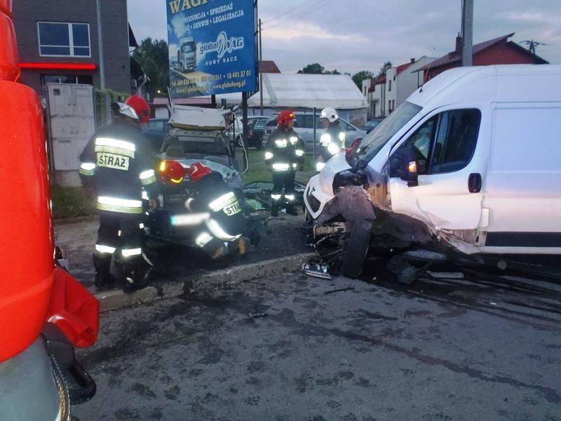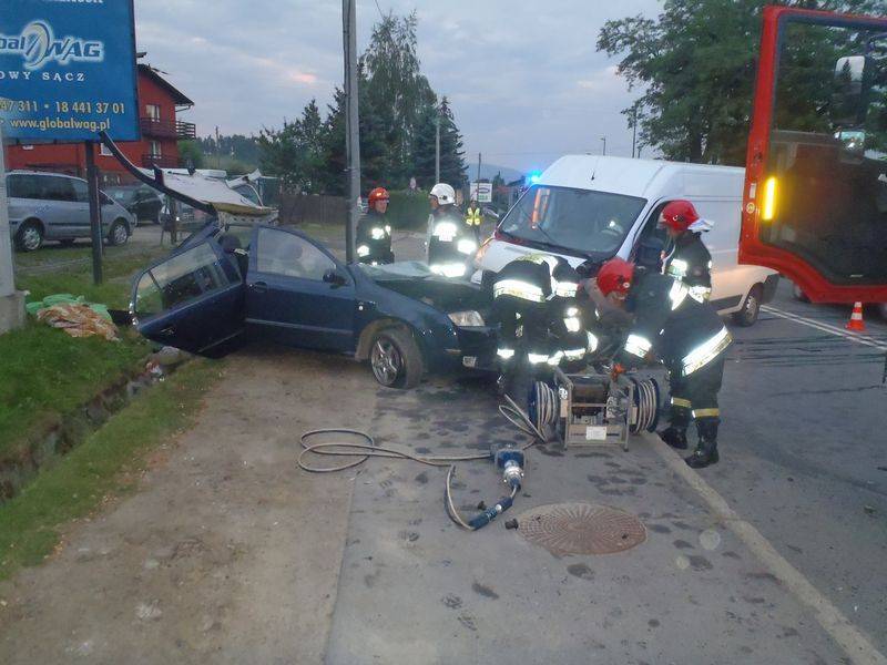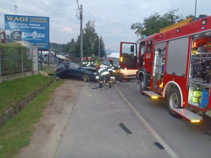Samochód dostawczy znajdował się na jezdni blokując jeden pas ruchu a samochód osobowy usytuowany był  poza jezdnią na chodniku. Kierowca samochodu osobowego był zakleszczony w pojeździe. Niezbędne było użycie sprzętu hydraulicznegorelacjonuje Marian Marszałek z PSP Nowy SączKierujący samochodem dostawczym  znajdował się poza pojazdem bez widocznych obrażeń. W trakcie prowadzonych czynności ratowniczych, ruchem wahadłowo kierowała Policja. Podczas  trwania działań na miejsce  przybyły dwie karetki pogotowia ratunkowego, których załogi udzielały pomocy osobom poszkodowanym. Działania strażaków trwały godzinę.