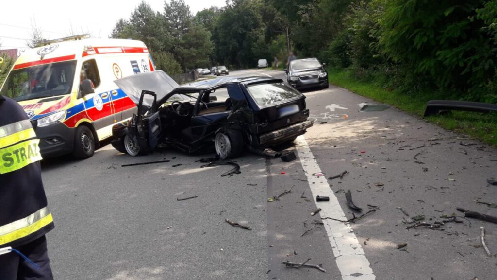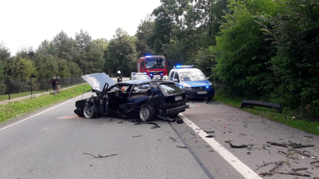 –Po przybyciu na miejsce zdarzenia ustalono, że doszło do zderzenia dwóch samochodów tj. Volkswagen Golf oraz Mercedes -relacjonują strażacy –Samochodami podróżowali tylko kierowcy. Jeden kierowca uskarżał się na dolegliwości. Poszkodowany oczekiwał na karetkę Pogotowia ratunkowego pod nadzorem strażaka. Następnie został przewieziony do szpitala. Działania strażaków trwały ponad pięć godzin. Policja prowadzi czynności wyjaśniające.