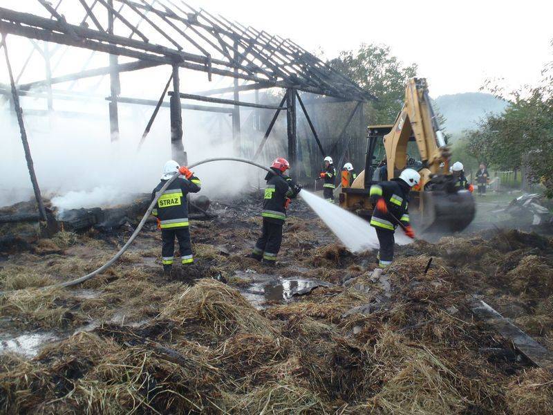 –Po przybyciu na miejsce zdarzenia ustalono, że pożarem objęty był w całości budynek stodoły do której bezpośrednio przylegał budynek stajni –relacjonuje Marian Marszałek z PSP Nowy Sącz –Kilka metrów od płonącego budynku zlokalizowany był budynek mieszkalny. Właściciel przed przybyciem zastępu straży ewakuował zwierzęta ze stajni. Działania przybyłych strażaków polegały na podaniu prądów wody w obronie na najbardziej zagrożone budynki. Następnie podano prądy wody na palącą się stodołę. Właściciel zorganizował koparkę w celu rozbiórki stodoły. Usunięte elementy konstrukcyjne wraz z przerzucanym sianem i słomą były cały czas przelewane wodą.