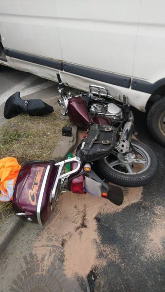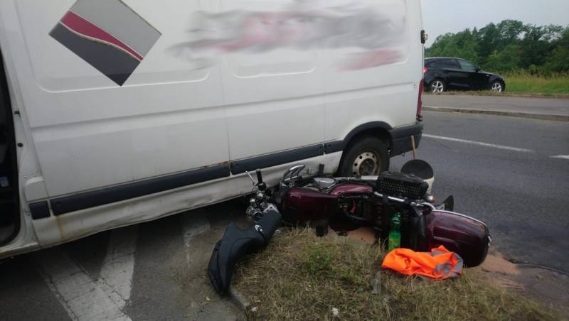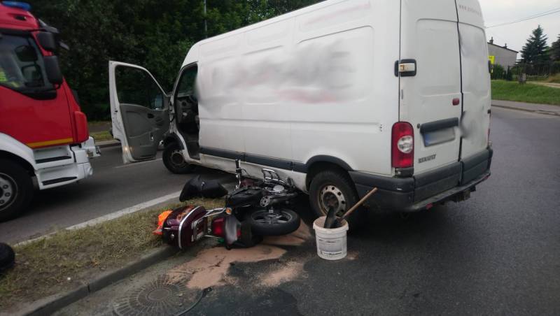 -Doszło tam do zderzenia samochodu dostawczego i motocykla. Pojazdami podróżowali sami kierujący -relacjonują strażacy – Poszkodowany został kierujący motocyklem , któremu pomocy udzieliła załoga karetki Pogotowia Ratunkowego. Kierujący motocyklem został zabrany do szpitala.