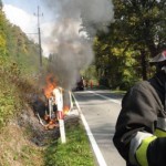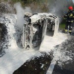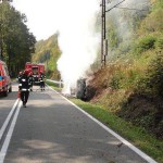 Dzisiaj, 8 października, kilkanaście minut przed godziną trzynast dwa zastępy z JRG w Krynicy Zdroju oraz z OSP Żegiestów zadysponowane zostały do gaszenia pożaru w Żegiestowie. Po przybyciu na miejsce zdarzenia ustalono, że samochód osobowy leżał na lewym boku poza jezdnią i był cały objęty ogniem.